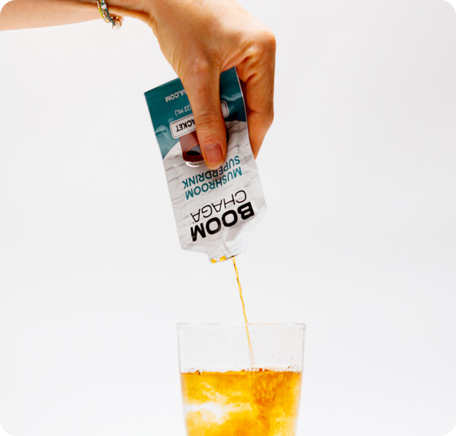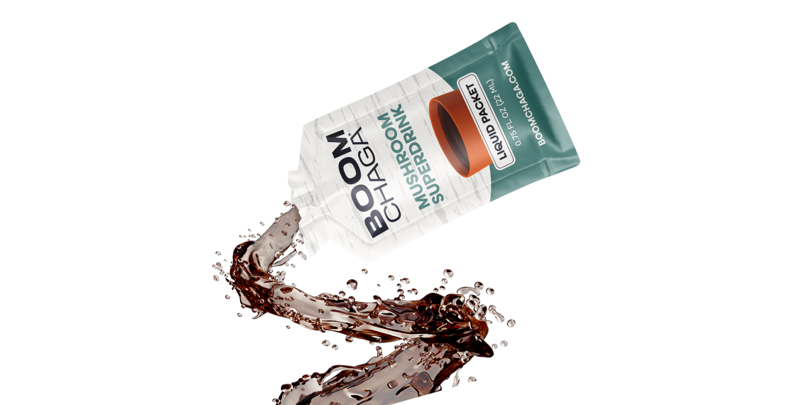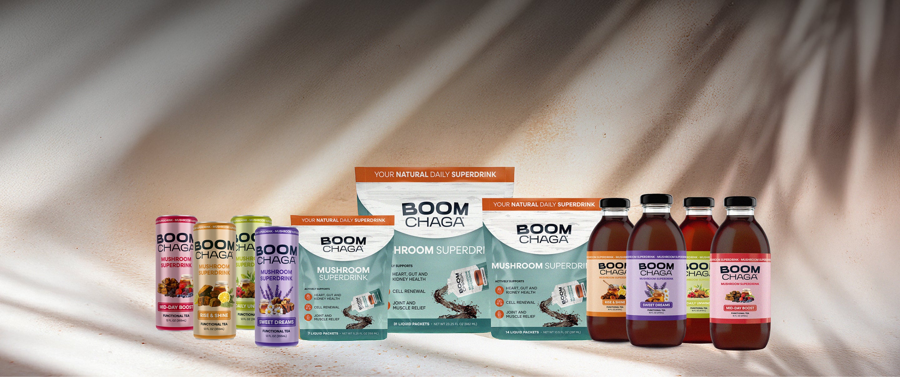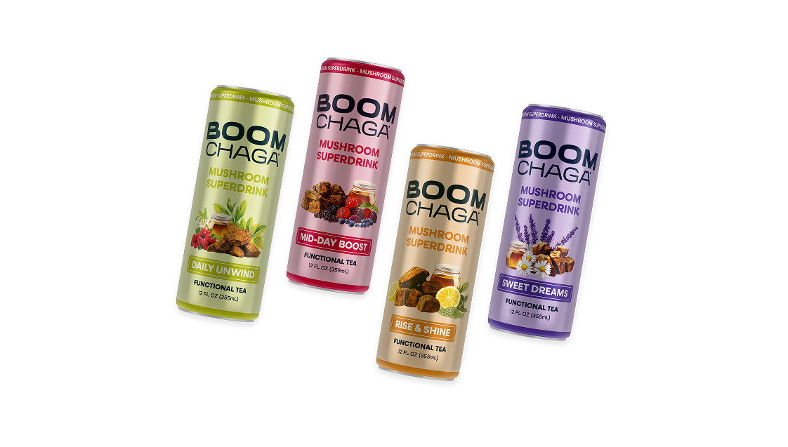 BOOM Chaga is a line of wild-harvested, double-extracted Chaga mushroom beverages created for focus, immunity, recovery, and gut health.